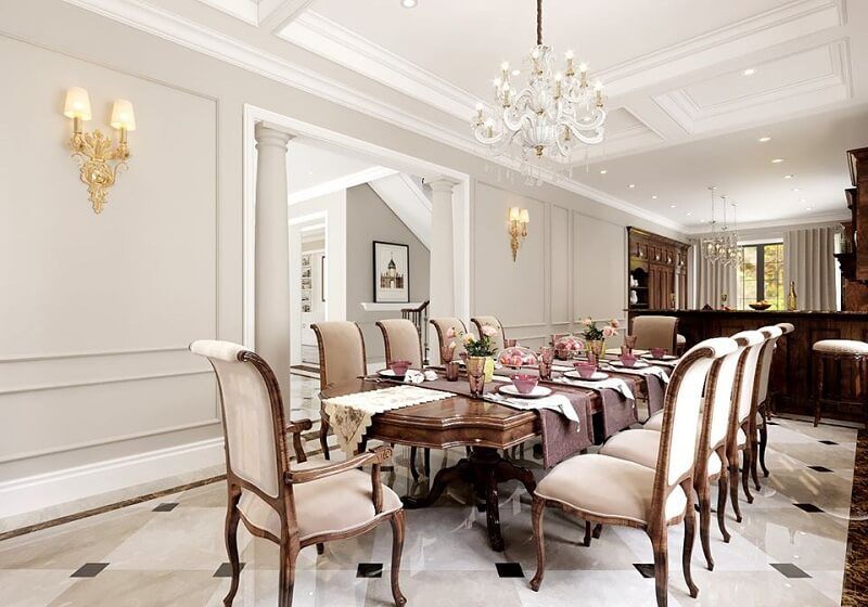. Bộ bàn ghế ăn bọc da cao cấp gỗ óc chó đẹp cổ điển sẽ làm nổi bật không gian gia đình bạn bằng phong cách tân cổ điển và cuốn hút mọi ánh nhìn.